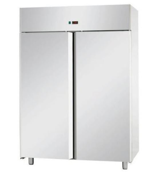 Две глухие двери с автоматическим блокирующим устройством. Рабочая температура составляет -18 ºC, -22 ºC, объем шкафа 1200л, 6 полок с пластиковым покрытием для гастроемкостей размером GN 2/1., толщина термоизоляции 60 мм.
