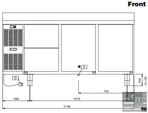 Профессиональный стол с охлаждением имеет габаритные размерами: 1721мм (длина), 700мм (глубина), 800мм (высота).