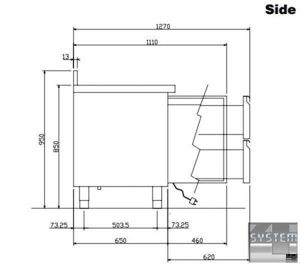 Профессиональный стол с охлаждением имеет габаритные размерами: 1759мм (длина), 700мм (глубина), 850мм (высота).
