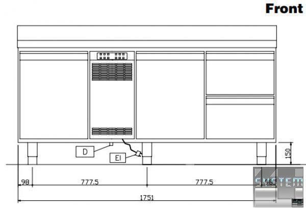 Профессиональный стол с охлаждением имеет габаритные размерами: 1759мм (длина), 700мм (глубина), 950мм (высота).