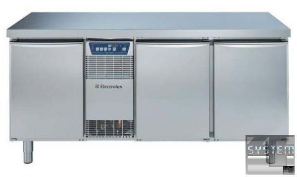 Морозильный стол Electrolux 726587, трёхдверный без борта, объёмом 440л., температурный режим работы -15…-22°С с возможностью предустановки готовых режимов, система автоматической разморозки и испарения только при необходимости, изоляция толщиной 60мм., электронное микропроцессорное управление с дисплеем, в комплекте 3 полки решетки GN 1/1 (до 4 на одно отделение), климат класс +43°С, скруглённые углы, модульная конструкция дверей, пониженное энергопотребление, история работы за последние 7 дней, исполнение нерж. сталь AISI 304