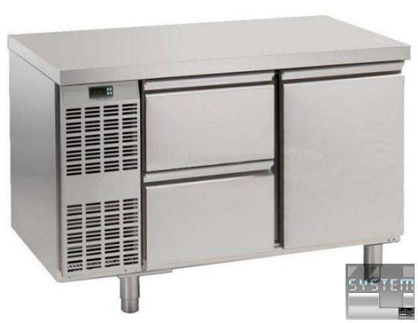 Морозильный стол Electrolux 728304, без борта, объёмом 265л., температурный режим работы -15…-20°С, 1 дверь и 2 выдвижных ящика 1/2, система автоматической разморозки и испарения, изоляция толщиной 50мм., цифровой дисплей, в комплекте 1 полка решетка GN 1/1 (до 6 на одно отделение), климат класс +43°С, слив, скруглённые углы, исполнение нерж. сталь AISI 304