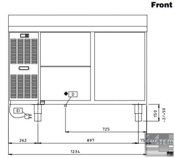Профессиональный стол с охлаждением имеет габаритные размерами: 1238мм (длина), 700мм (глубина), 850мм (высота).