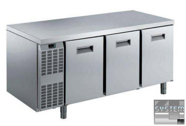 Морозильный стол Electrolux 728517, без борта трёхдверный, объёмом 415л., температурный режим работы -15…-20°С, система автоматической разморозки и испарения, изоляция толщиной 50мм., цифровой дисплей, в комплекте 3 полки решетки GN 1/1, климат класс +38°С, исполнение нерж. сталь AISI 304