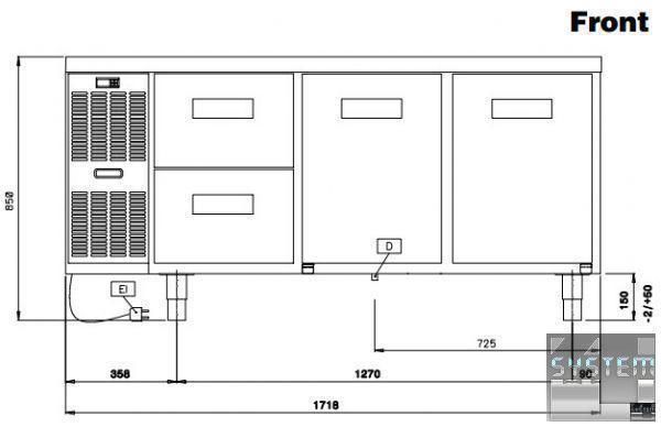 Профессиональный стол с охлаждением имеет габаритные размерами: 1718мм (длина), 700мм (глубина), 850мм (высота).