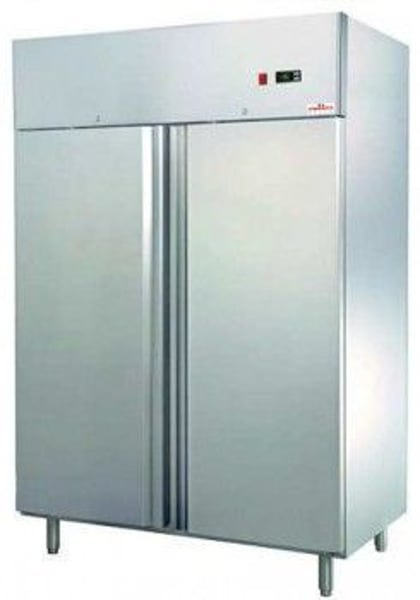 Внешняя и внутренняя отделка морозильного шкафа изготовлена из нержавеющей стали. Двухдверная морозилка, благодаря обработке сатинированной шлифовке, не оставляет пятен от прикосновения рук. Регулируемые ножки из нержавеющей стали. Рабочая температура: -18 ºC, -22 ºC при комнатной температуре 38ºC. Объем шкафа составляет 1340л, 6 полок формата GN 2/1, одна камера. Вентилируемое охлаждение. Автоматическое испарение воды во время размораживания. Внутреннее освещение морозильного шкафа очень удобно в использовании. Регулирование температуры термостата с индикаторным термометром.