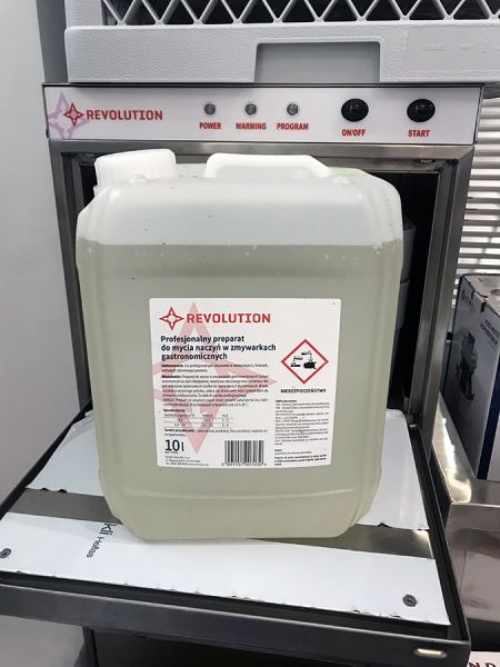 Профессиональное моющее средство для мытья посуды предназначено для профессиональной посудомоечной машины. Благодаря автоматической дозировке дозатором, моющее средство очень экономно расходуется. В процессе мытья посуды, моющая жидкость полностью удаляет жиры, разнообразные пятна и загрязнения в жесткой воде, поэтому посуда и стекло становятся безупречно чистыми и сверкающими без каких-либо пятен и разводов. Моющее средство Revolution 999552 предотвращает отложение накипи в посудомоечной машине.
