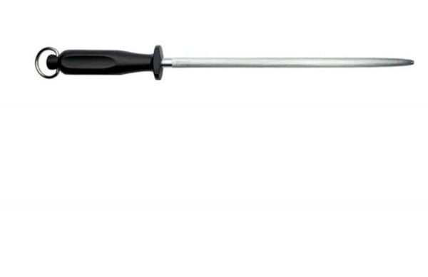 Профессиональный мусат - это отличный и незаменимый инструмент в правке кухонных ножей, который относится к профессиональному инвентарю для кафе и ресторанов. Достаточно сделать несколько движений и лезвие ножа станет острым, как и прежде.