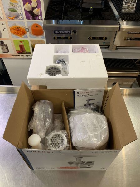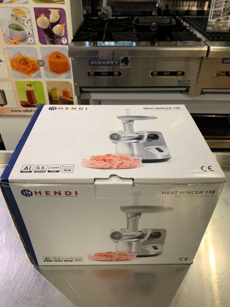 Мясорубка Hendi 198, сделана из прочного алюминия, имеет две скорости работы, функцию "реверс", двигатель вентилируется, тем самым не перегревается.