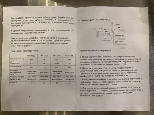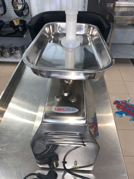 Корпус оборудования и лоток выполнены из высококачественной нержавеющей стали, а мясорубочная часть из никелированного метелла, что соответствует всем гигиеническим требованиям.