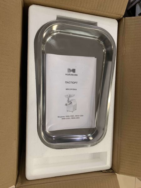 В комплект входит стандарный режущий инструмент, загрузочный лоток, толкатель, купатница, два дополнительных ножа и решетки - 6мм и 8мм.