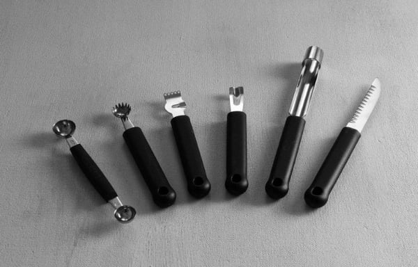 С помощью специальных ножей для декоративной нарезки можно делать чудесные фигурные композиции из различных овощей, фруктов и цитрусовых, которые украсят любой банкетный стол или кейтеринг.