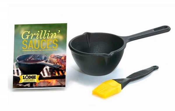 В набор для гриля входят: чугунный соусник 425гр , силиконовая щетка и поваренная книга «Grillin's Sauces» с десятью невероятными рецептами маринада и соуса. Щетка для чистки силиконовая термостойкая до 200°С и безопасна для мыться в посудомоечной машине.