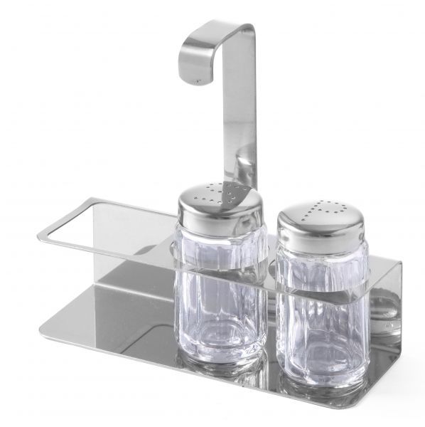 Набор для специй состоит из перечницы, солонки, емкости для приправ и подставки. Перечница, емкость и солонка выполнены из стекла, а подставка и крышечки - нержавеющая сталь.