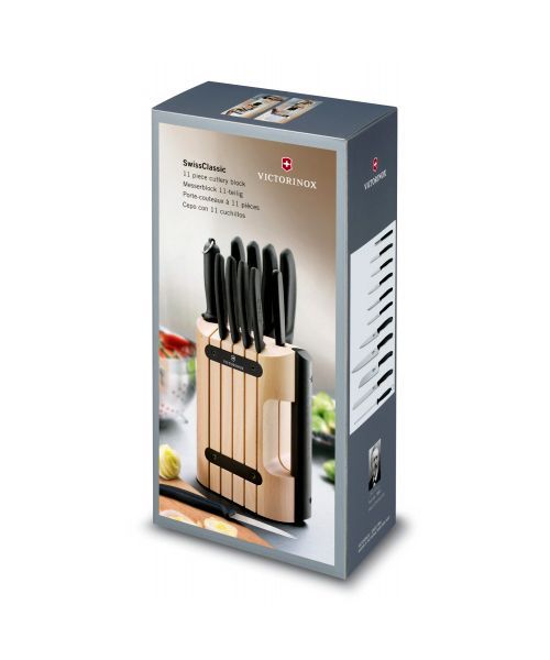 Также в набор ножей Victorinox входит стильная деревянная подставка, которая очень эффектно впишется в интерьер Вашей кухни.