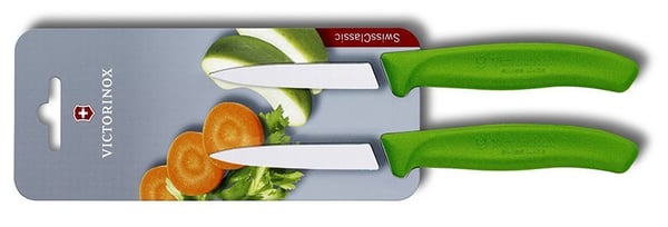 Отличный швейцарский набор Victorinox (2 ножа) станет незаменимым помощником для любой хозяйки на кухне. В набор входят кухонные ножи, которые предназначены для чистки, нарезки, декорирования овощей и фруктов. Ножи Викторинокс функциональные и надежные, работать с которыми – одно удовольствие. Яркий зеленый цвет рукояти очень заметный среди других кухонных аксессуаров, что позволит повару быстро его найти на рабочей поверхности.