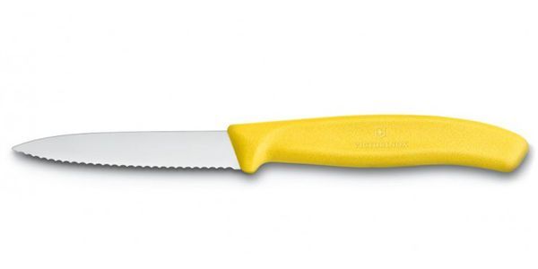 Отличный швейцарский набор Victorinox (2 ножа) станет незаменимым помощником для любой хозяйки на кухне. В набор входят кухонные ножи (серрейтор), которые предназначены для чистки, нарезки, декорирования овощей и фруктов. Ножи Викторинокс функциональные и надежные, работать с которыми – одно удовольствие. Яркий желтый цвет рукояти очень заметный среди других кухонных аксессуаров, что позволит повару быстро его найти на рабочей поверхности.
