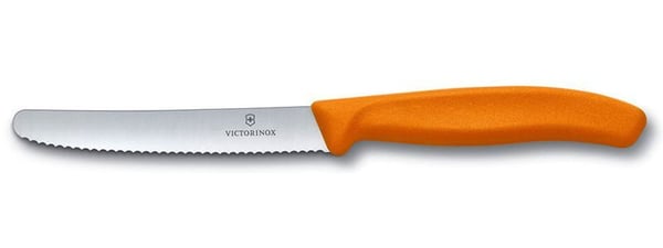 Отличный швейцарский набор Victorinox (2 ножа) станет незаменимым помощником для любой хозяйки на кухне. В набор входят кухонные ножи (серрейтор), которые предназначены для чистки, нарезки, декорирования овощей и фруктов. Ножи Викторинокс функциональные и надежные, работать с которыми – одно удовольствие. Яркий оранжевый цвет рукояти очень заметный среди других кухонных аксессуаров, что позволит повару быстро его найти на рабочей поверхности.
