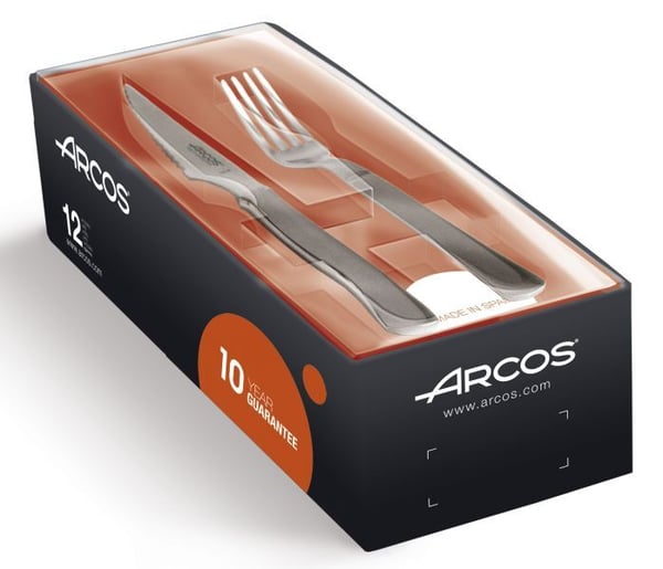 В наборе 12 предметов: 6 ножей и 6 вилок для стейка. Все предметы очень прочные, изготовлены из нержавеющей стали.