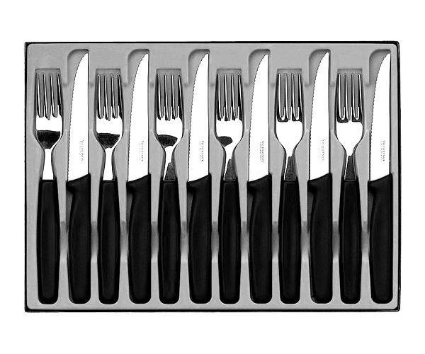 Набор столовых приборов поставляется в красивой подарочной упаковке с нанесенным логотипом Victorinox.