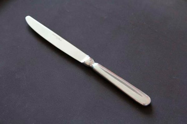 На кончике ножа для десертов расположены зубцы, кроме того, данный нож поуже закусочного ножа.