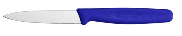 Отличный швейцарский нож Victorinox станет незаменимым помощником для любой хозяйки на кухне. Кухонный нож предназначен для чистки, нарезки, декорирования овощей и фруктов. Благодаря функциональности и надежности ножа, работать с ним – одно удовольствие. Яркий синий цвет рукояти очень заметный среди других кухонных аксессуаров, что позволит повару быстро его найти на рабочей поверхности.