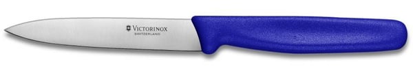 Отличный швейцарский нож Victorinox станет незаменимым помощником для любой хозяйки на кухне. Кухонный нож предназначен для чистки, нарезки, декорирования овощей и фруктов. Благодаря функциональности и надежности ножа, работать с ним – одно удовольствие. Яркий синий цвет рукояти очень заметный среди других кухонных аксессуаров, что позволит повару быстро его найти на рабочей поверхности.