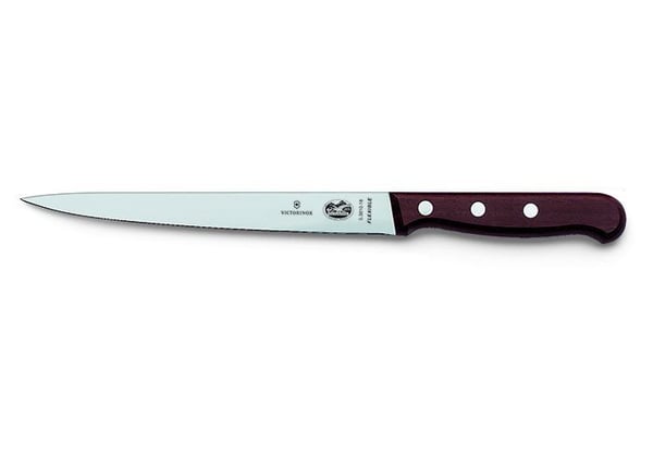 Швейцарский нож для филе Victorinox относится к сегменту профессионального кухонного инвентаря для кафе и ресторанов. Кухонный нож предназначен для вырезания филе, а также тонкой и аккуратной нарезки готового мяса.