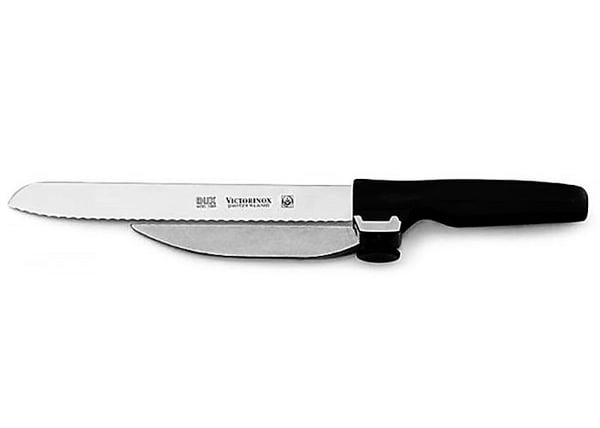 Швейцарский кухонный нож Victorinox относится к сегменту профессионального кухонного инвентаря для кафе и ресторанов. Основное предназначение ножа – нарезка хлебобулочных изделий. С помощью дополнительного приспособления, хлеб можно нарезать ровно и аккуратно.