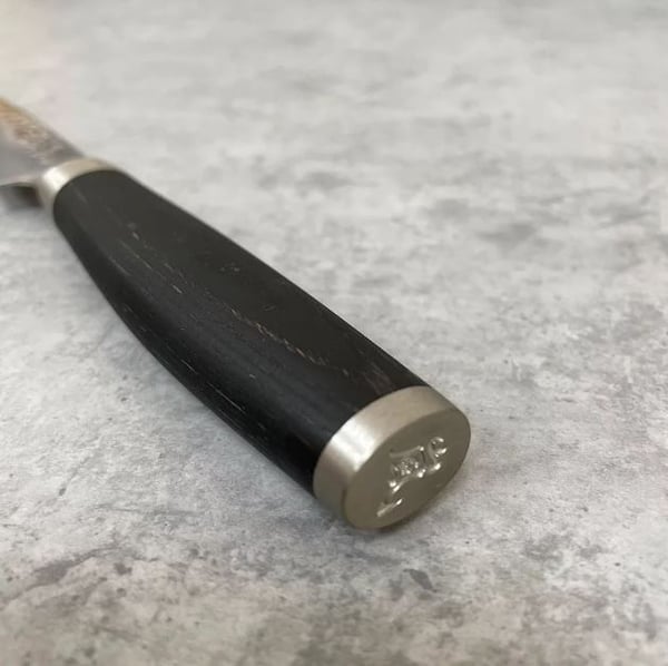 • В основе ножа высококачественная 3-слойная нержавеющая сталь VG10 с волнистым узором KATANA, четко вырисовывается на лезвии.