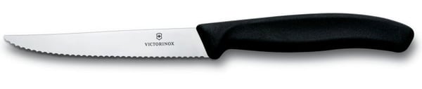 Швейцарский нож Victorinox создан для тех, кто любит стейки, отбивные и жареное мясо. Благодаря острому серрейторному лезвию, мясо легко можно нарезать быстро и аккуратно. Также кухонный нож можно применять при нарезании пиццы.