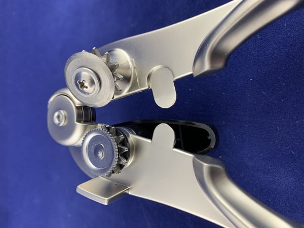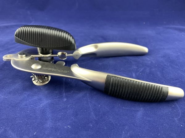 Консервный нож Аркос удобно фиксируется на краю банки, нож прокручивается с помощью бокового винта.
