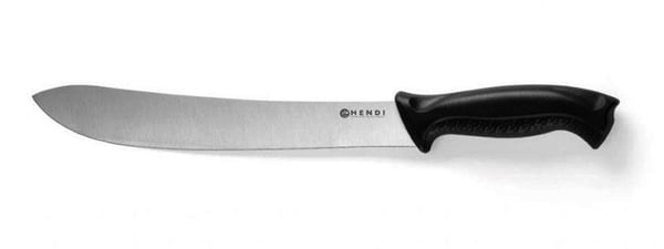 Нож мясника Hendi относится к сегменту профессионального кухонного инвентаря для кафе и ресторанов. Кухонный нож - тяжелый и массивный с широким лезвием, благодаря которому удобно разделывать и обваливать мясные туши.