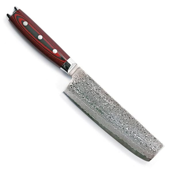 • В основе клинков есть высококачественная японская порошковая сталь SG2, покрытая защитными обкладками из 160 слоев из нержавеющей стали с эффектным дамасским узором на лезвии.