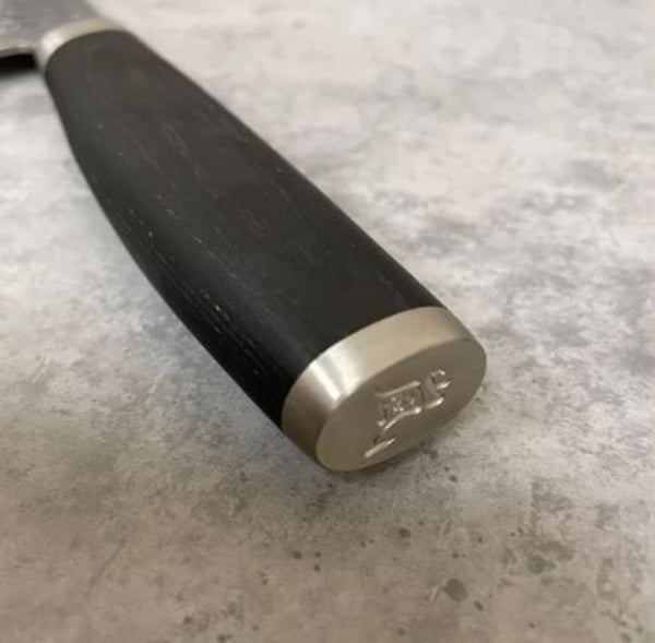 • В основе ножа высококачественная 3-слойная нержавеющая сталь VG10 с волнистым узором KATANA, четко вырисовывается на лезвии.