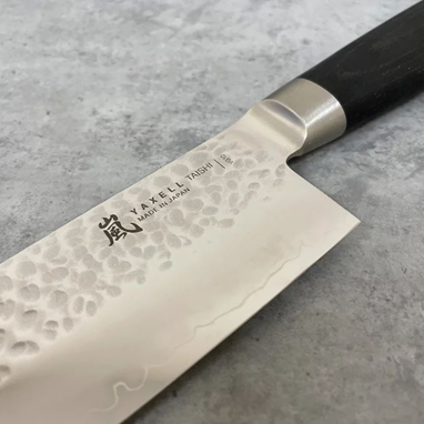 Ножи Yaxell изготовлены японскими мастерами и сочетают многовековые традиции обработки металла с самыми современными технологическими разработками: лезвия нагреваются в печи до высокой температуры и опускаются в лед, а затем снова нагреваются. Используют очень высокие температуры, чтобы сделать лезвие крепким и долговечным в использовании его на профессиональной кухне. В то же время, эта жаровая обработка делает лезвие устойчивым к коррозии. Японский нож из этой серии станет настоящим подарком для любителя японских кулинарных традиций. Форма ручки позволяет работать без устали во всех техниках.