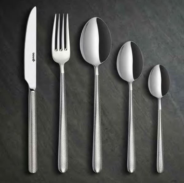 Коллекция столовых приборов Bonna Illusion выполнена в элегантном неподвластном стиле времени. Приборы этой серии отличаются от других тем, что украшены классическими полосатыми узорами, оттесненными на всех предметах.