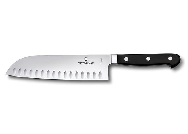 Швейцарский кухонный нож Victorinox относится к сегменту профессионального кухонного инвентаря для кафе и ресторанов. Основное предназначение кухонного ножа Santoku – нарезка разных видов продуктов. Благодаря тонкой кромке лезвия, японским ножом можно нарезать мясо, рыбу, а также овощи и фрукты.