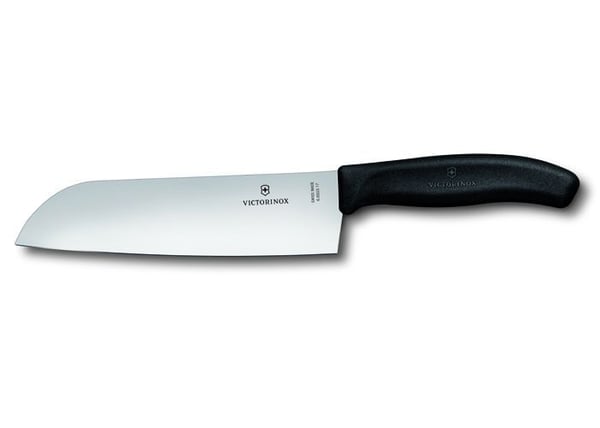 Швейцарский кухонный нож Victorinox относится к сегменту профессионального кухонного инвентаря для кафе и ресторанов. Основное предназначение кухонного ножа Santoku – нарезка разных видов продуктов. Нож идеально подойдет для нарезания ломтиками или кубиками овощей и мяса.
