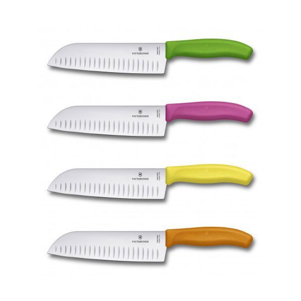 Швейцарский кухонный нож Victorinox относится к сегменту профессионального кухонного инвентаря для кафе и ресторанов. Основное предназначение кухонного ножа Santoku – нарезка разных видов продуктов. Нож идеально подойдет для нарезания ломтиками или кубиками овощей и мяса.