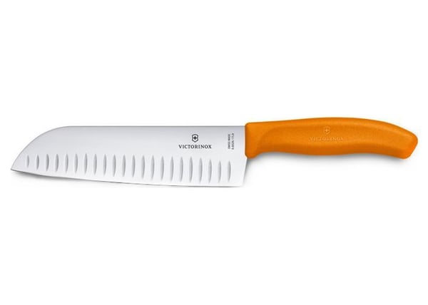 Швейцарский кухонный нож Victorinox относится к сегменту профессионального кухонного инвентаря для кафе и ресторанов. Основное предназначение кухонного ножа Santoku – нарезка разных видов продуктов. Нож идеально подойдет для нарезания ломтиками или кубиками овощей и мяса.