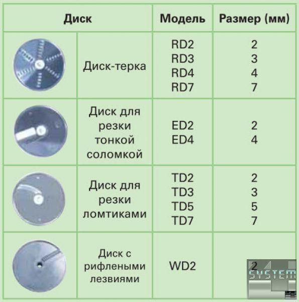 - Агрегат комплектуется режущими дисками и решетками в соответствии с потребностями заказчика (диск-терка, диски для резки тонкой соломки, диски для резки ломтиками)