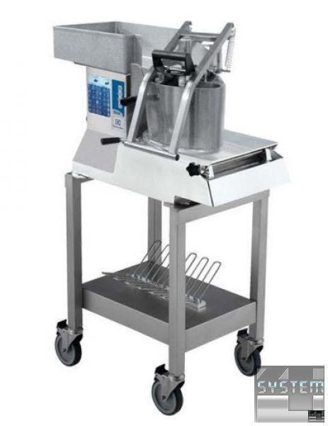 Профессиональная овощерезка Electrolux 603277 для нарезки и протирки овощей, настольная модель, в комплекте с подавателем, производительностью 700 кг./час овощей, росчитана на предприятия с приготовлением до 750 блюд, одна скорость 300 об/мин. Возможность установки 4-х разных по размеру бункеров (по запросу), конструкция полностью из нерж.стали, защита от перепадов напрящения. В комплекте с тележкой-подставкой и 4-мя дисками