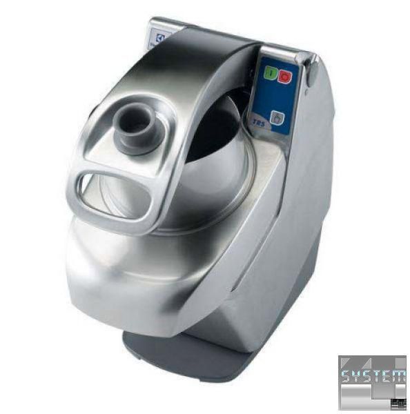 Профессиональная овощерезка Electrolux 603313 производительностью 250 - 300 кг/час, импульсная водонепроницаемая панель управления, двойное отверстие для загрузки продукта, 1 режим скорости работы, двигатель 360 об/мин., загрузочный бункер из нержавеющей стали, корпус - полированный алюминий