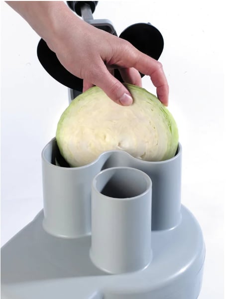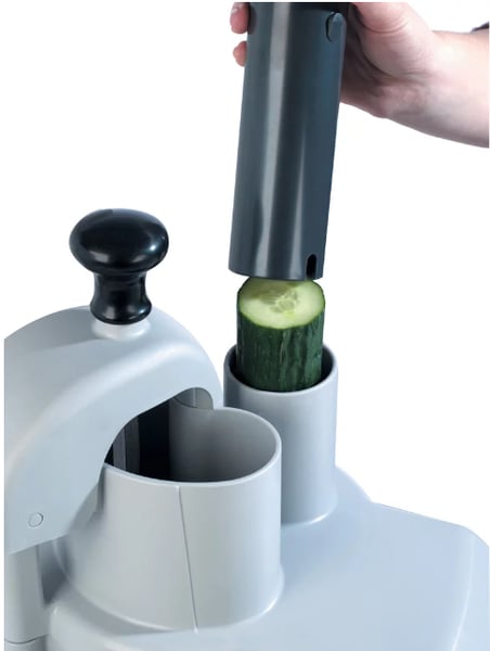 Цилиндрическая воронка (58 мм) предназначена для равномерной нарезки длинных и деликатных продуктов.