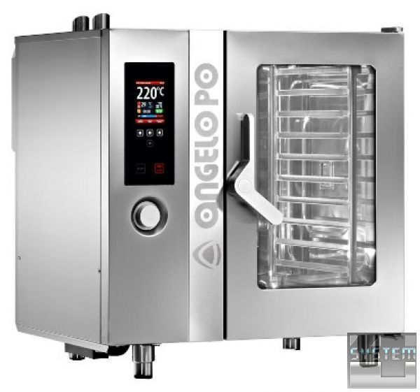 Пароконвектомат Angelo Po FX101G3: Газовый нагрев. Вместимость - GN 1/1 х 10, противни 60х40 х 8. Условная производительность - 140 блюд. Топ модель - уровень 3.