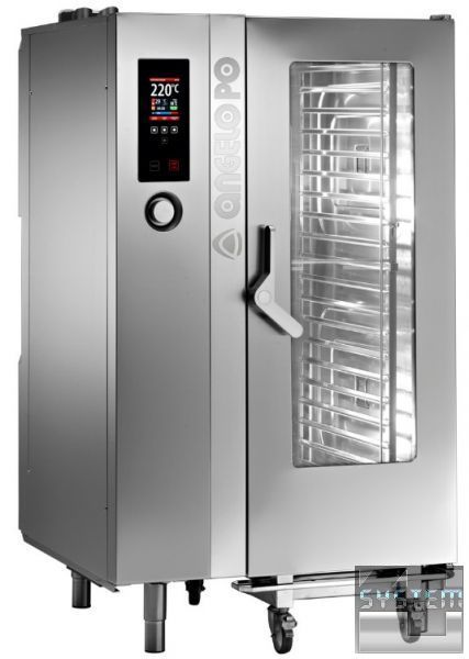 Пароконвектомат Angelo Po FX201E3: Электрический нагрев. Вместимость - GN 1/1 х 20, противни 60х40 х 15. Условная производительность - 280 блюд. Топ модель - уровень 3.