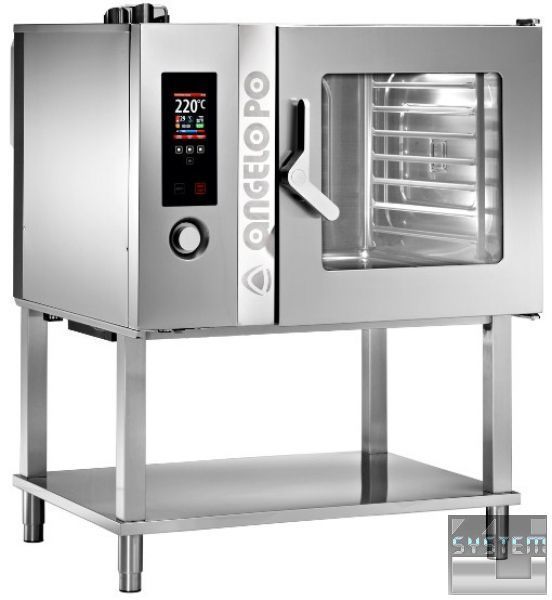 Пароконвектомат Angelo Po FX82E3: Электрический нагрев. Вместимость - GN 1/1 х 16, GN 2/1 х 8, противни 60х40 х 8. Условная производительность - 223 блюда. Топ модель - уровень 3.
