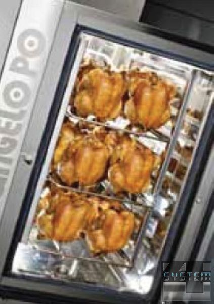 Пароконвектомат Angelo Po FX82G3C: Интегрированный пароконвектомат специализированный для приготовления продукции из домашней птицы. Газовый нагрев. Вместимость - GN 1/1 х 16, GN 2/1 х 8, противни 60х40 х 8, - решетки для циплят Х 4. Условная производительность - 223 блюда либо 32 ципленка. Топ модель - уровень 3.