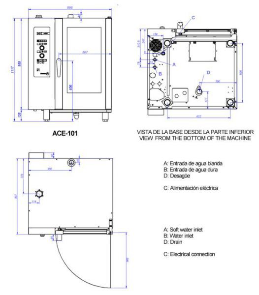 Предусмотрено галогенное освещение камеры. Конвекционный режим от + 30 до + 300С, пароконвекционный режим + 30 до + 250С и контролем уровня влажности от 0 до 90%. Режим пара + 30 до + 125С.